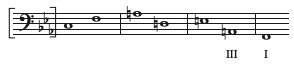 From this emerges a close on to the tonic from III, falling III to I. The dominant, though not brought into play here, sounds over the tonic in